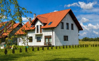 Dom położony jest w spokojnej, zielonej okolicy, z dala od ruchu samochodowego. Lokalizacja pozwala odpocząć od miasta, a jednocześnie zapewnia szybki dojazd do kluczowych punktów.