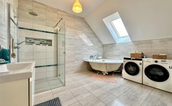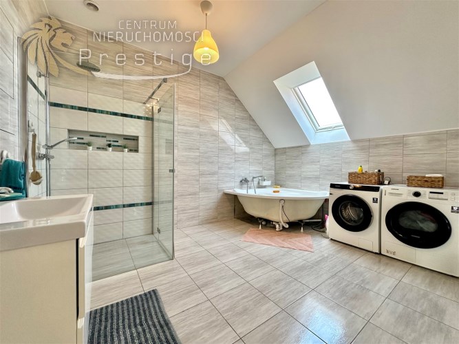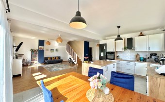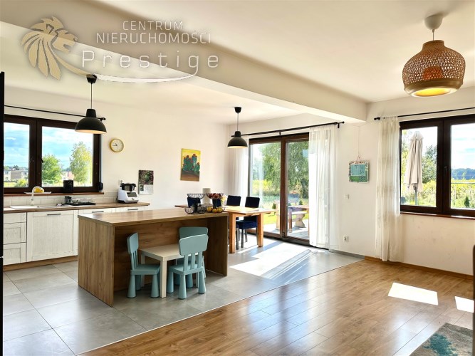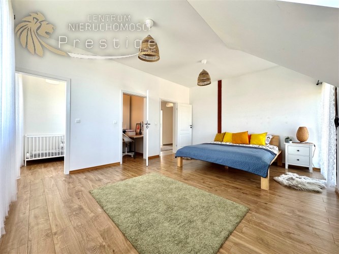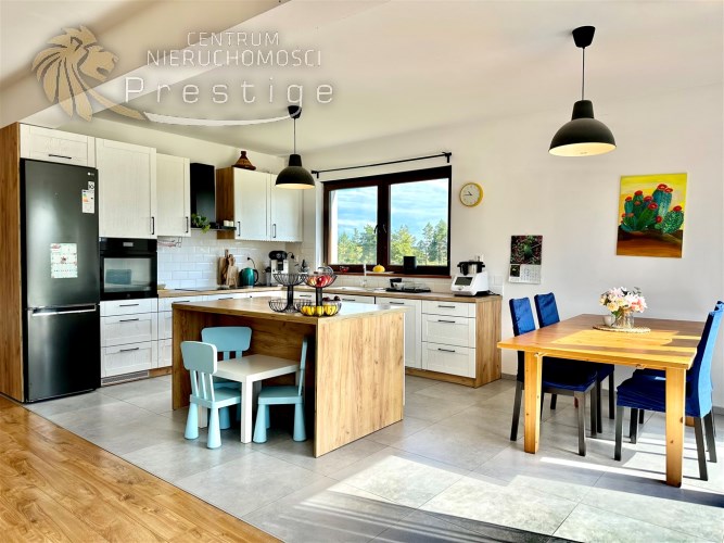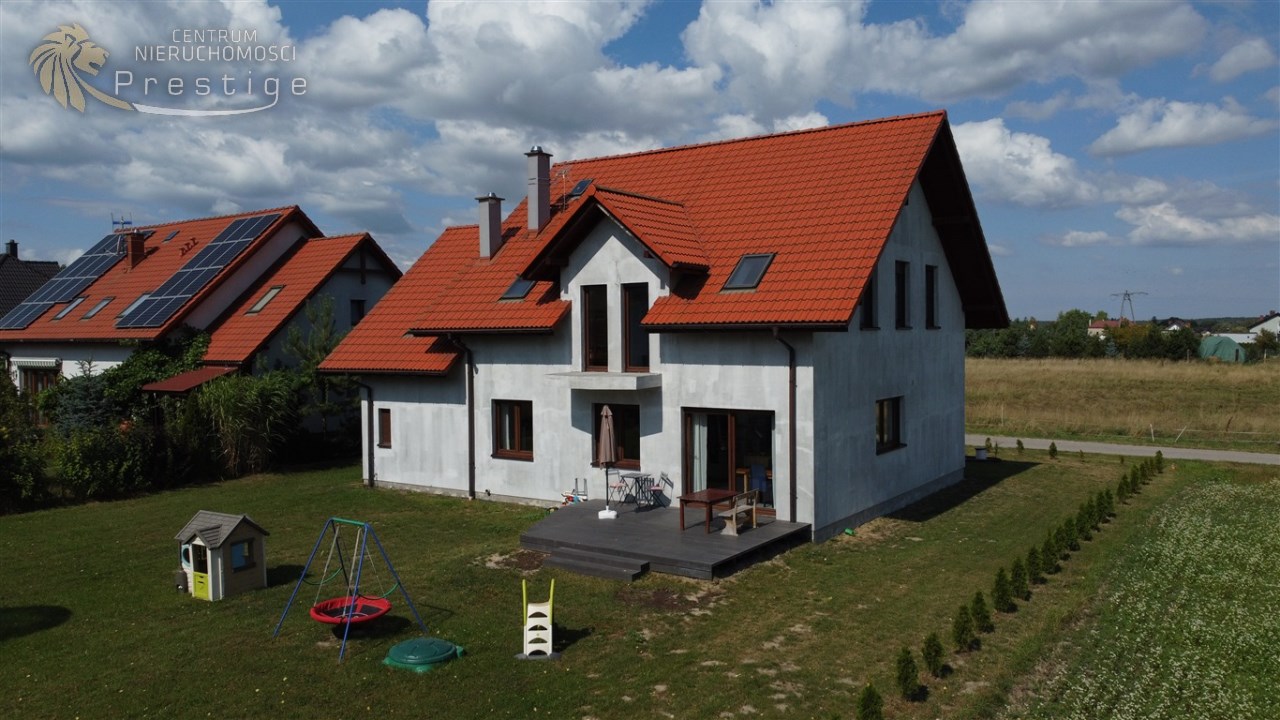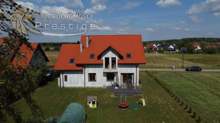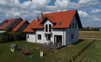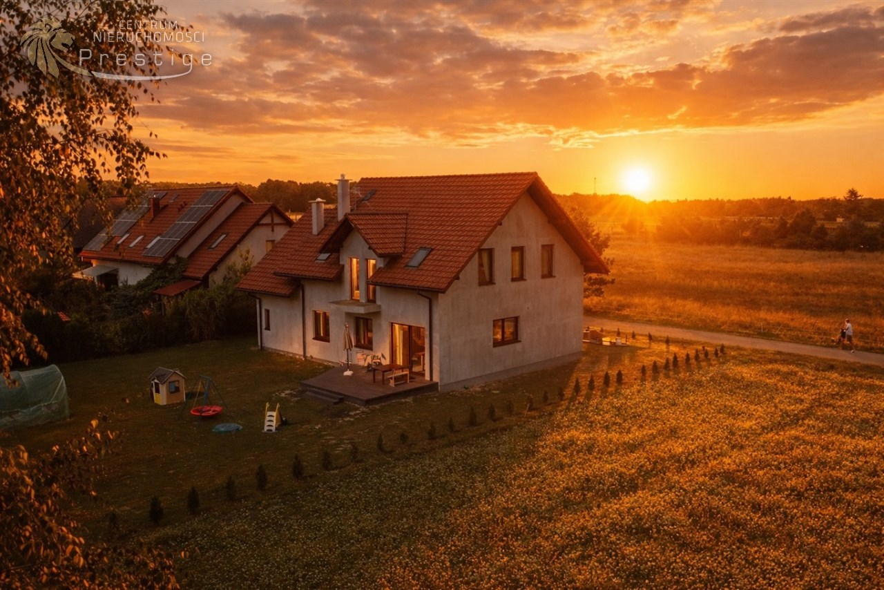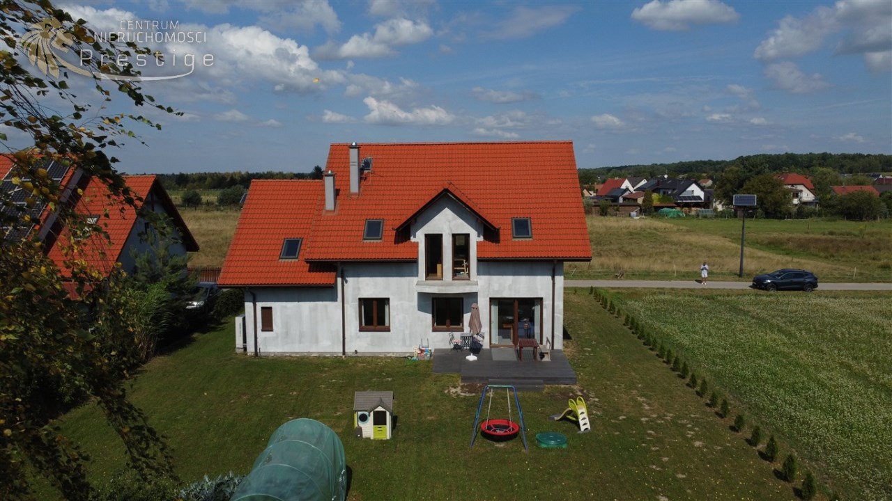 Na sprzedaż nowoczesny dom oddany do użytkowania w 2021 roku, wykonany w tradycyjnej technologii murowanej. Budynek posiada strop Teriva 1 oraz ocieplenie z grafitowego styropianu o grubości 15cm. Nieruchomość o powierzchni netto 233,85 m2, w tym powierzchni użytkowej 198,24 m2, położona jest na wyjątkowej działce o powierzchni 865 m2.