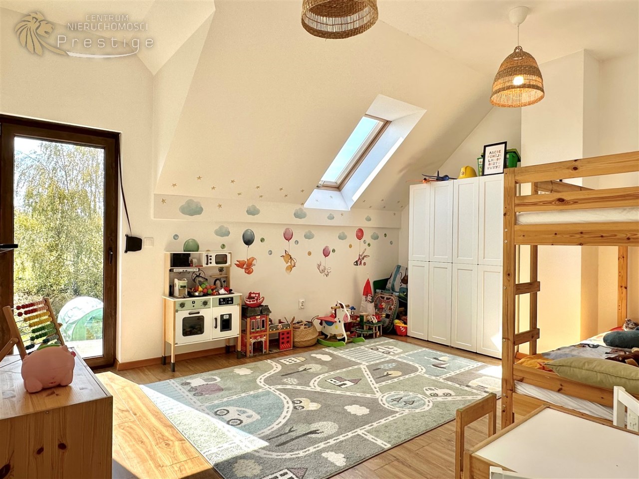 Dom położony jest w spokojnej, zielonej okolicy, z dala od ruchu samochodowego. Lokalizacja pozwala odpocząć od miasta, a jednocześnie zapewnia szybki dojazd do kluczowych punktów.