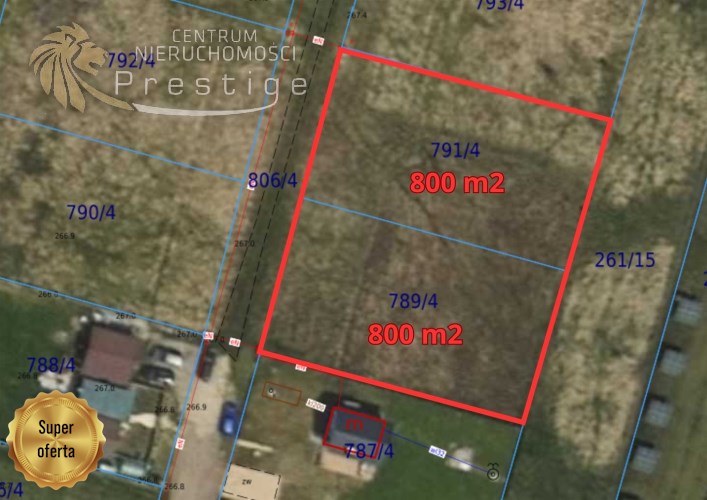 Na sprzedaż oferujemy dwie atrakcyjne działki budowlane, każda o powierzchni 800 m², sprzedawane w całości jako jedna nieruchomość o łącznej powierzchni 1600 m². Istnieje natomiast możliwość zakupu działek odrębnie.
