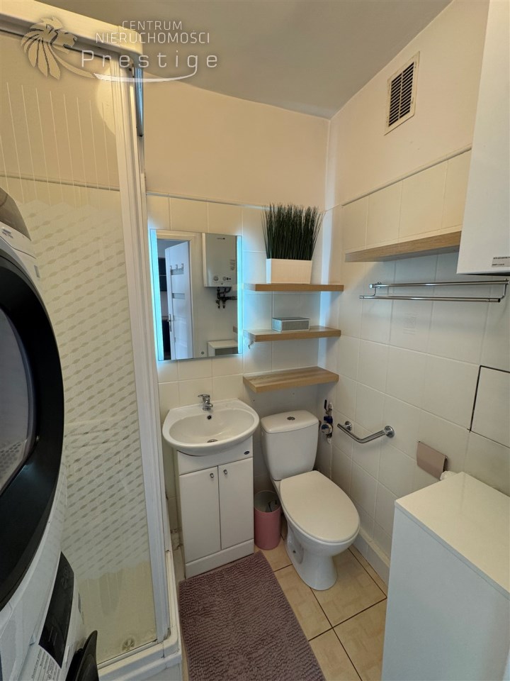 - Elegancka łazienka z WC i kabiną prysznicową,