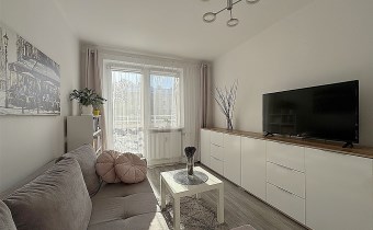 - Salon z wyjściem na balkon, niezależna, jasna przestrzeń do odpoczynku i wspólnych chwil,