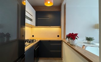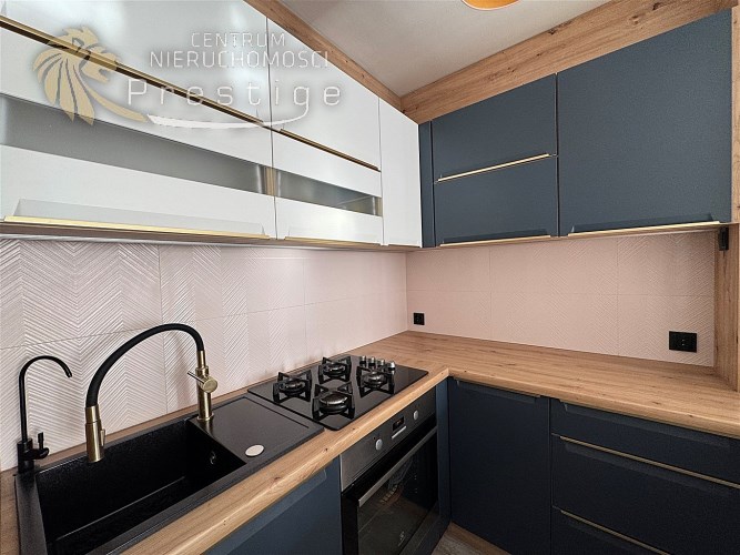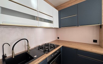 Kuchnia po generalnym remoncie w marcu 2025 roku, zaprojektowana przez dekoratora wnętrz. Zabudowa na wymiar, wykonana z materiałów najwyższej jakości, łączy nowoczesną formę z ponadczasową elegancją. W cenie mieszkania pozostają meble kuchenne oraz płyta gazowa i piekarnik elektryczny - gotowe, by towarzyszyć codziennym rytuałom.