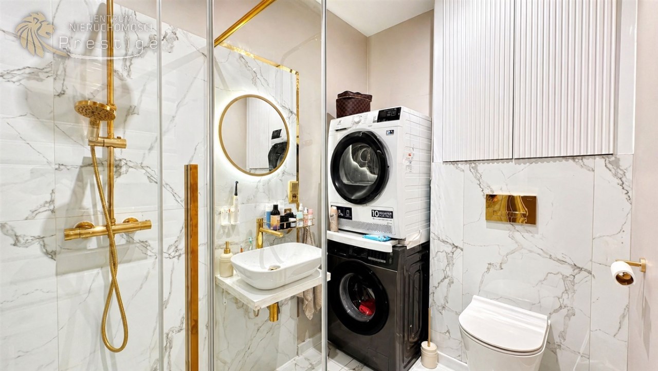 Wnętrze utrzymane jest w stylu glamour, co nadaje mu elegancki i spójny charakter.