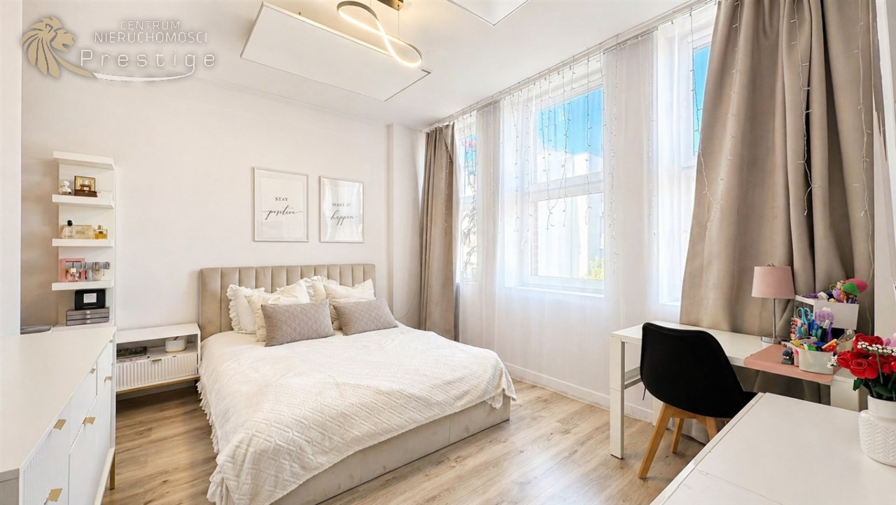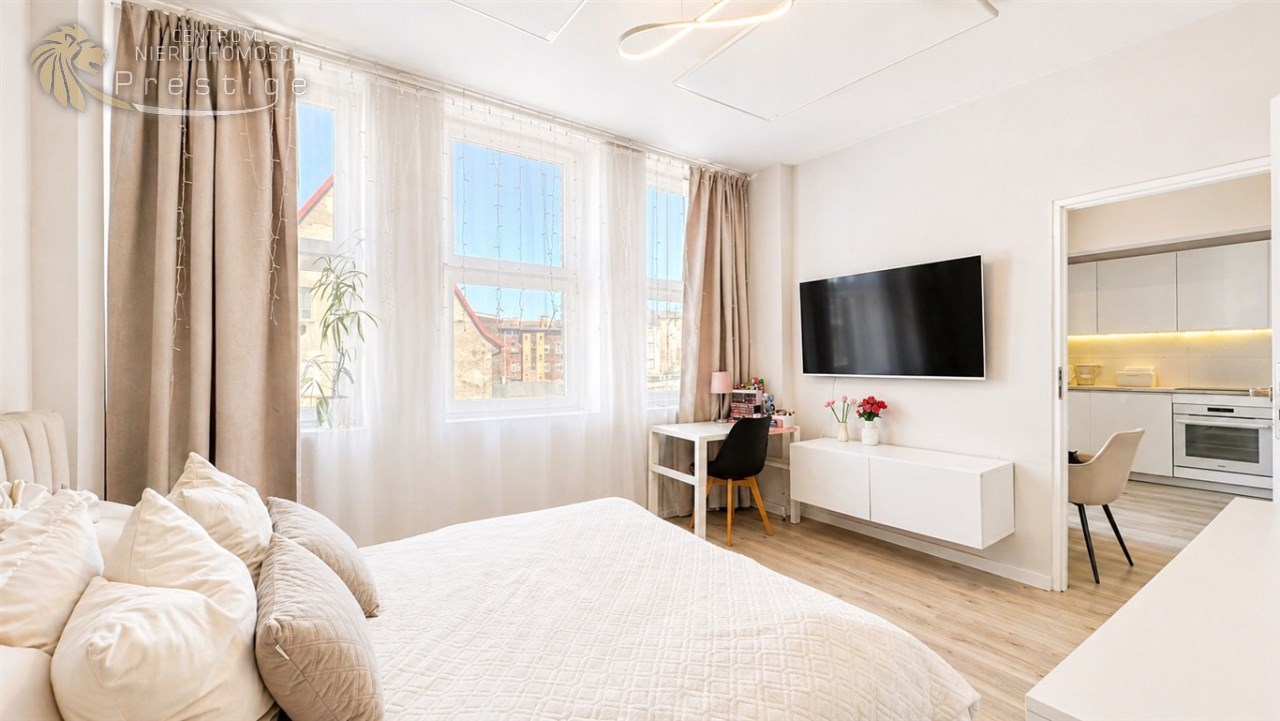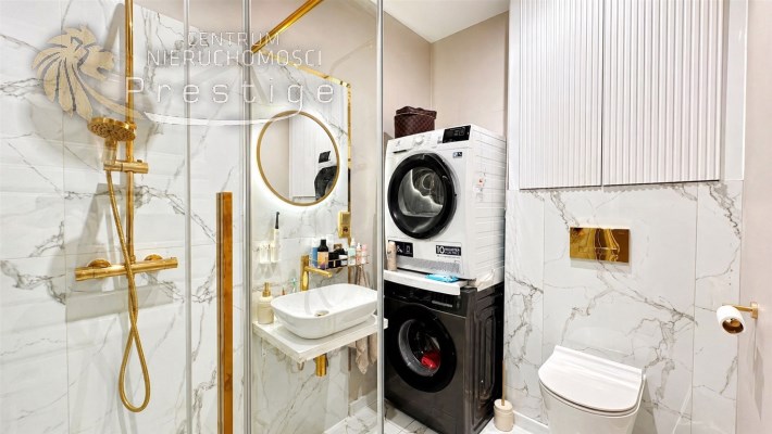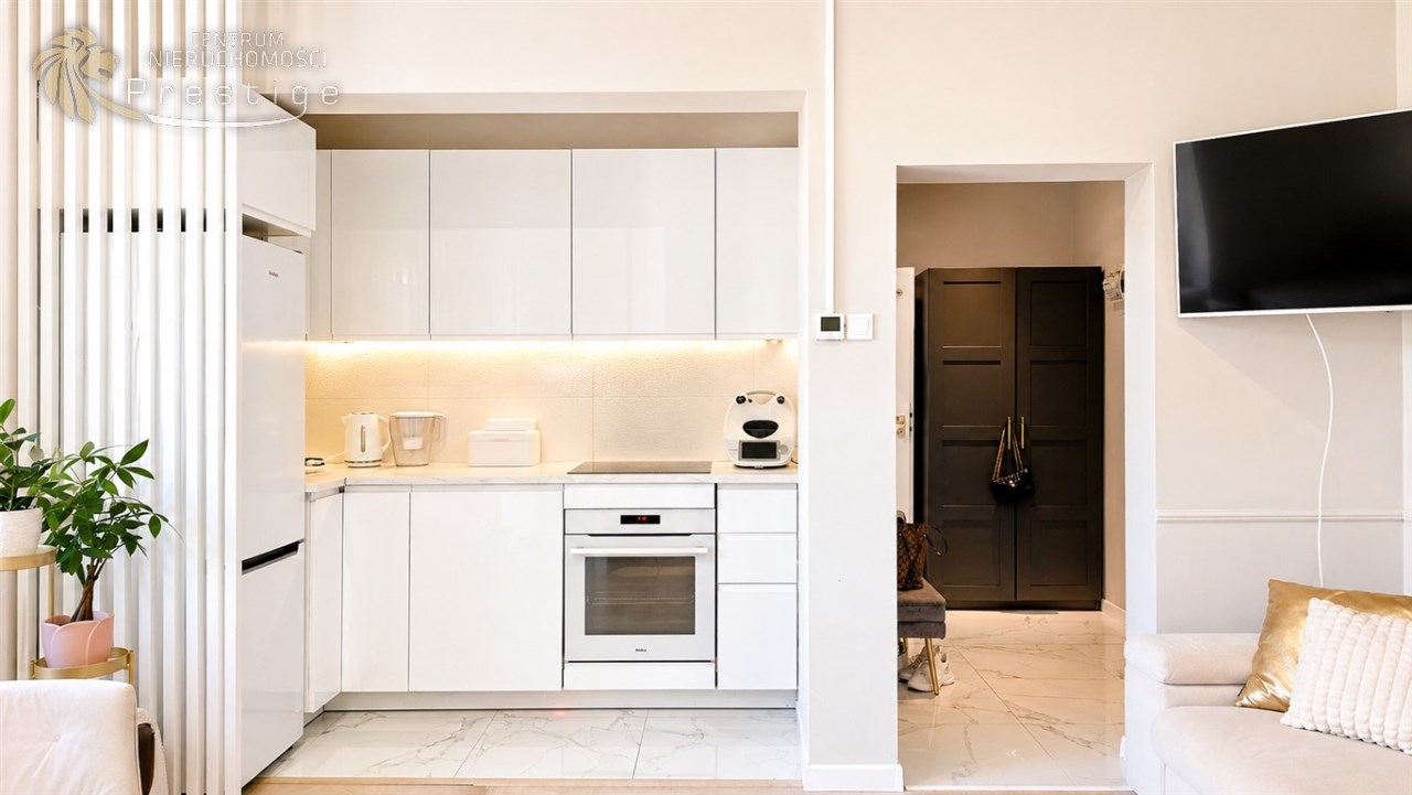 Mieszkanie sprzedawane jest z pełnym wyposażeniem widocznym na zdjęciach, w tym: