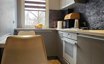 - Kuchnia z meblami na wymiar, wyposażona w kompletny sprzęt AGD