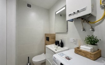 W mieszkaniu przeprowadzono generalny remont obejmujący wszystkie kluczowe elementy. Wymieniono instalacje elektryczne oraz wodno-kanalizacyjne. Wykonano gładzie na ścianach, podwieszono sufity oraz położono wysokiej klasy panele i kafle.