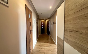 Część mieszkania została już wyremontowana — kuchnia, łazienka, salon, sypialnia oraz przedpokój są po remoncie, z gładziami na ścianach, wymienioną instalacją elektryczną, panelami oraz kaflami na podłogach. W całym mieszkaniu zamontowano okna PCV oraz drzwi antywłamaniowe.W pozostałych pomieszczeniach rozpoczęto prace remontowe — wymieniono instalacje elektryczne, co daje dobry punkt wyjścia do dokończenia całości według własnej koncepcji. Wyposażenie mieszkania pozostaje do uzgodnienia. Ogrzewanie w mieszkaniu jest elektryczne, lecz w budynku jest gaz, co daje możliwość założenia gazowej instalacji centralnego ogrzewania.
