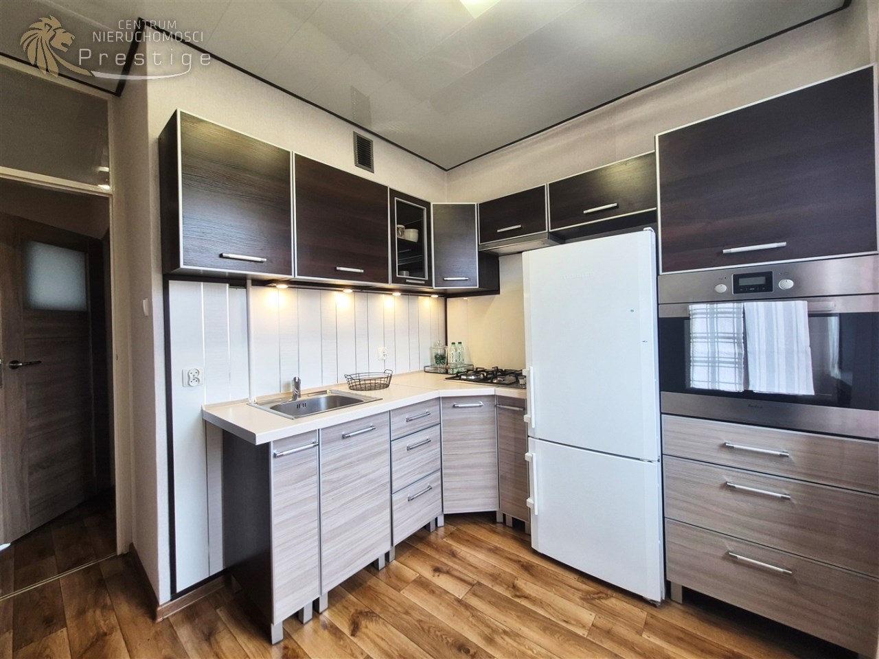 Zabudowa kuchenna wraz z sprzętem AGD ( lodówka , piekarnik , płyta gazowa ) .